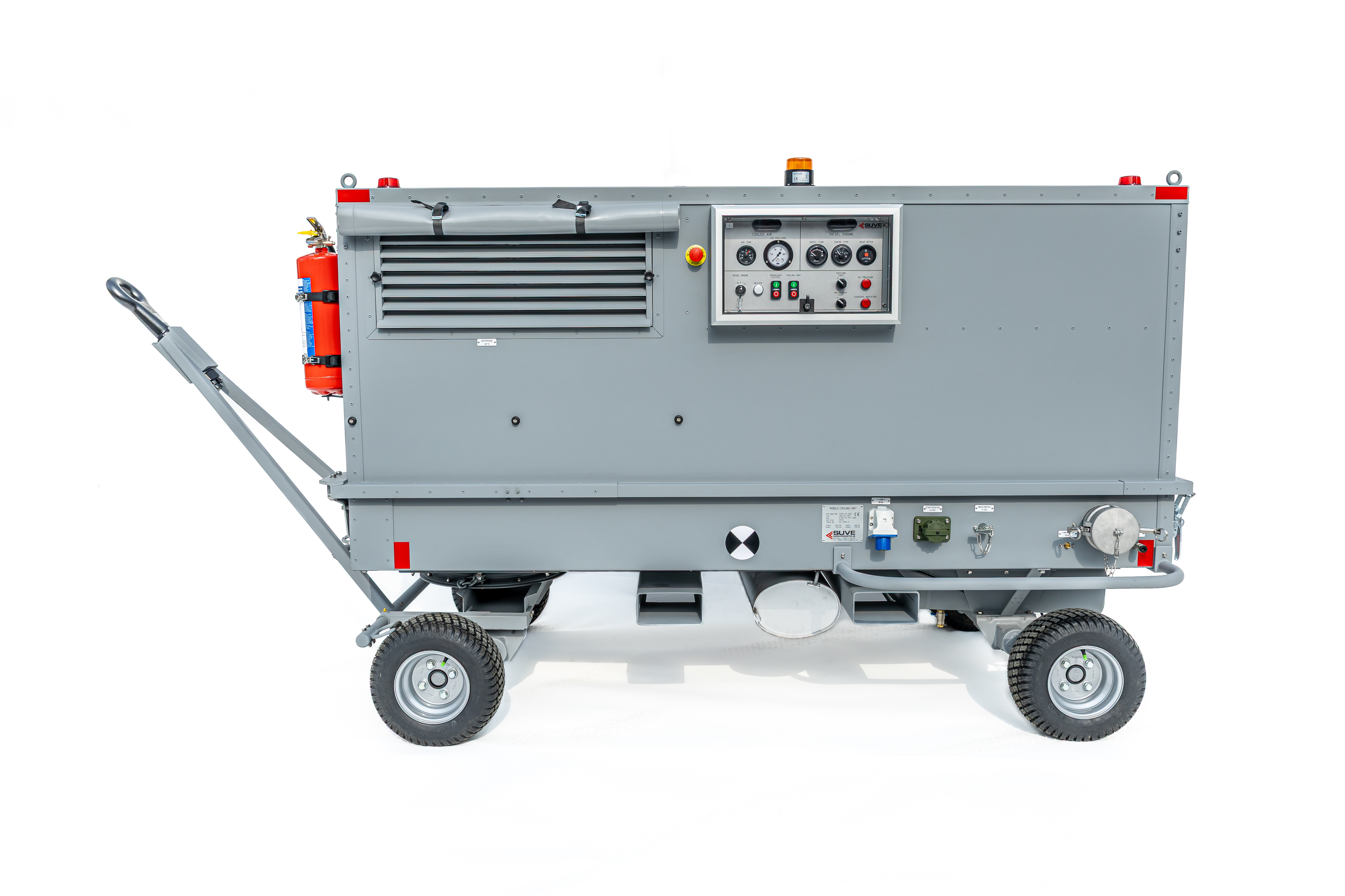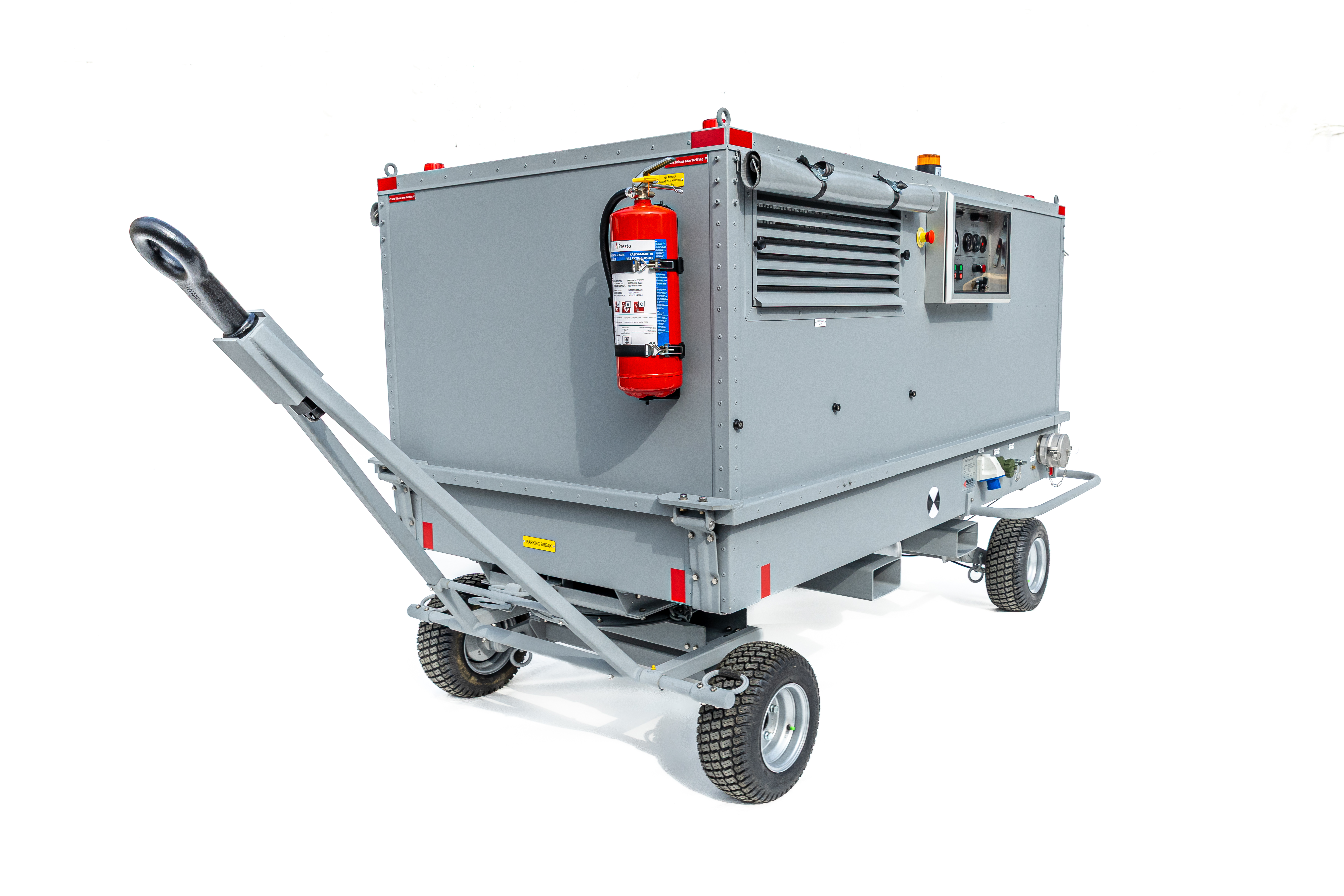 Specialtillverkad mobil kylaggregat för extern kylning av F-16 stridsflygplan för krävande förhållanden.